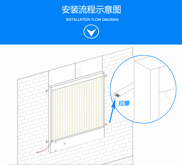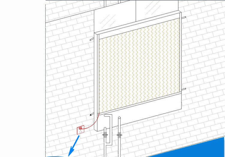 负压风机结构简图如下: 在墙上固定负压风机的位置,如下图