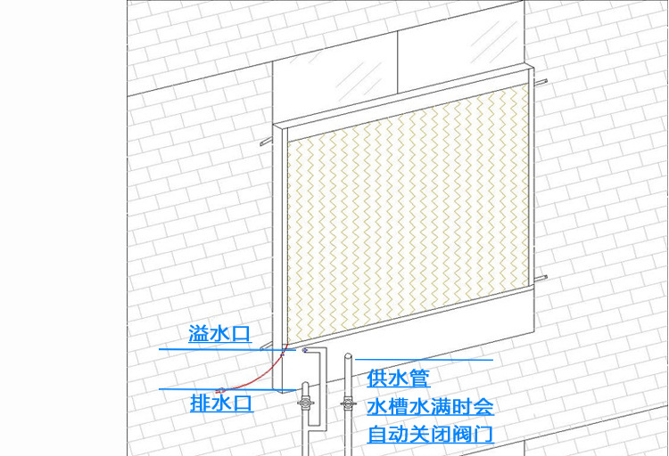 5、如发现湿帘供水不足或不均时,要检查池中是否缺水,水泵是否运转,以及供水管路和水泵入水口是否能过水,供水管路上的小孔是否堵塞,并检查喷水管路是否位于湿帘的正中。正常的喷水高度应大于。